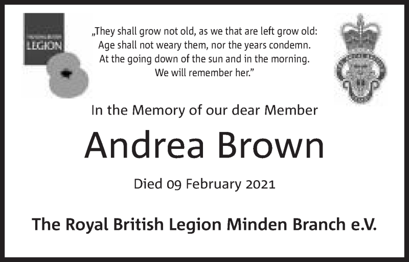 Hier finden Sie alle Traueranzeigen aus der Zeitung, die bisher für Andrea Brown erschienen sind. Weitere Traueranzeigen, die in der Zeitung erscheinen, werden hier ebenfalls aufgelistet