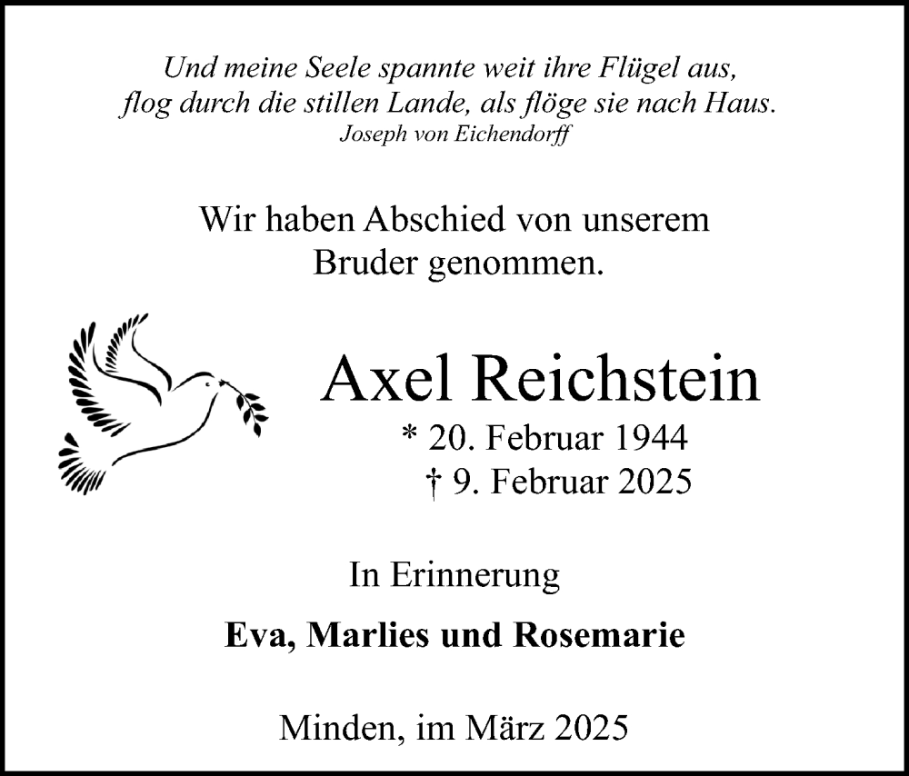 Hier finden Sie alle Traueranzeigen aus der Zeitung, die bisher für Axel Reichstein erschienen sind. Weitere Traueranzeigen, die in der Zeitung erscheinen, werden hier ebenfalls aufgelistet