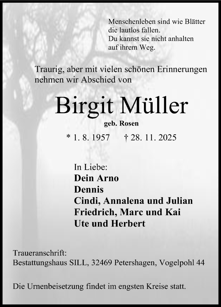 Hier finden Sie alle Traueranzeigen aus der Zeitung, die bisher für Birgit Müller erschienen sind. Weitere Traueranzeigen, die in der Zeitung erscheinen, werden hier ebenfalls aufgelistet