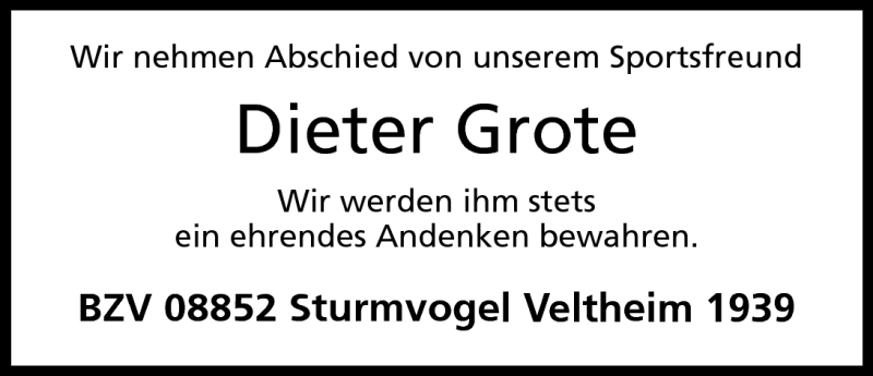 Hier finden Sie alle Traueranzeigen aus der Zeitung, die bisher für Dieter Grote erschienen sind. Weitere Traueranzeigen, die in der Zeitung erscheinen, werden hier ebenfalls aufgelistet