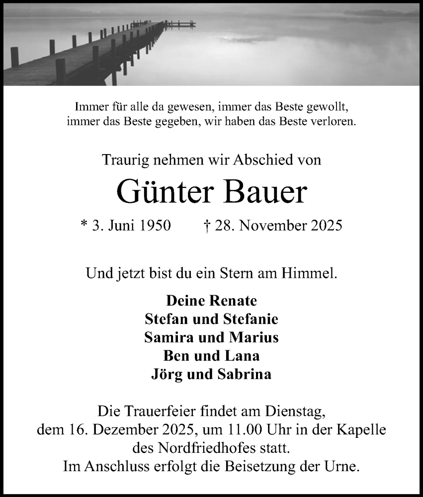 Hier finden Sie alle Traueranzeigen aus der Zeitung, die bisher für Günter Bauer erschienen sind. Weitere Traueranzeigen, die in der Zeitung erscheinen, werden hier ebenfalls aufgelistet