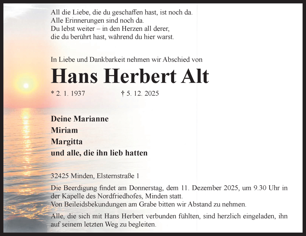 Hier finden Sie alle Traueranzeigen aus der Zeitung, die bisher für Hans Herbert Alt erschienen sind. Weitere Traueranzeigen, die in der Zeitung erscheinen, werden hier ebenfalls aufgelistet