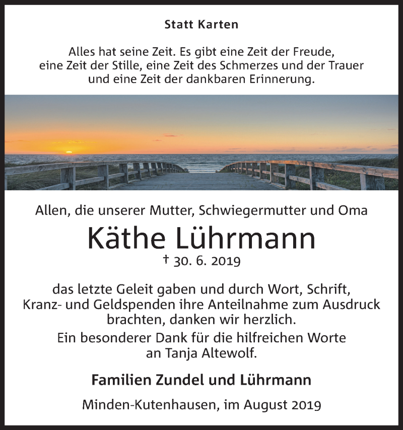 Hier finden Sie alle Traueranzeigen aus der Zeitung, die bisher für Käthe Lührmann erschienen sind. Weitere Traueranzeigen, die in der Zeitung erscheinen, werden hier ebenfalls aufgelistet