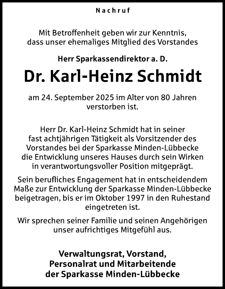 Hier finden Sie alle Traueranzeigen aus der Zeitung, die bisher für Karl-Heinz Schmidt erschienen sind. Weitere Traueranzeigen, die in der Zeitung erscheinen, werden hier ebenfalls aufgelistet
