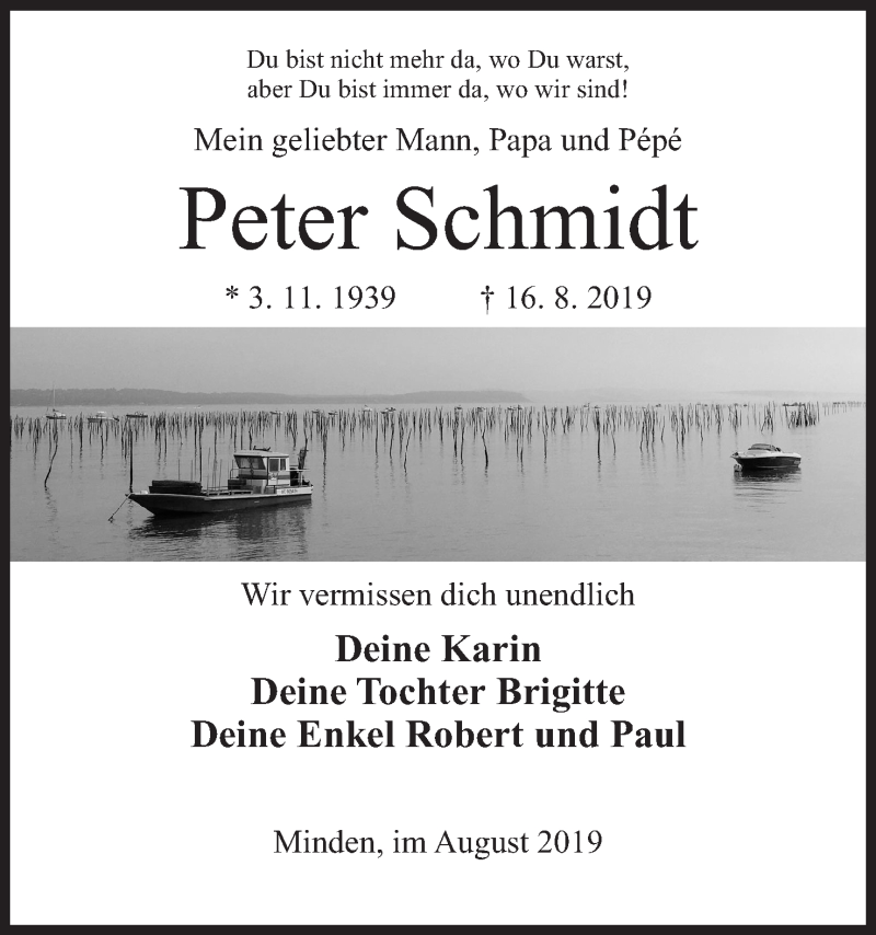 Hier finden Sie alle Traueranzeigen aus der Zeitung, die bisher für Peter Schmidt erschienen sind. Weitere Traueranzeigen, die in der Zeitung erscheinen, werden hier ebenfalls aufgelistet