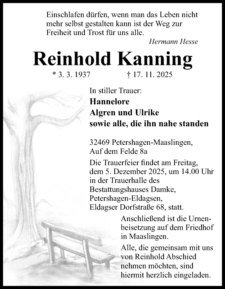 Hier finden Sie alle Traueranzeigen aus der Zeitung, die bisher für Reinhold Kanning erschienen sind. Weitere Traueranzeigen, die in der Zeitung erscheinen, werden hier ebenfalls aufgelistet