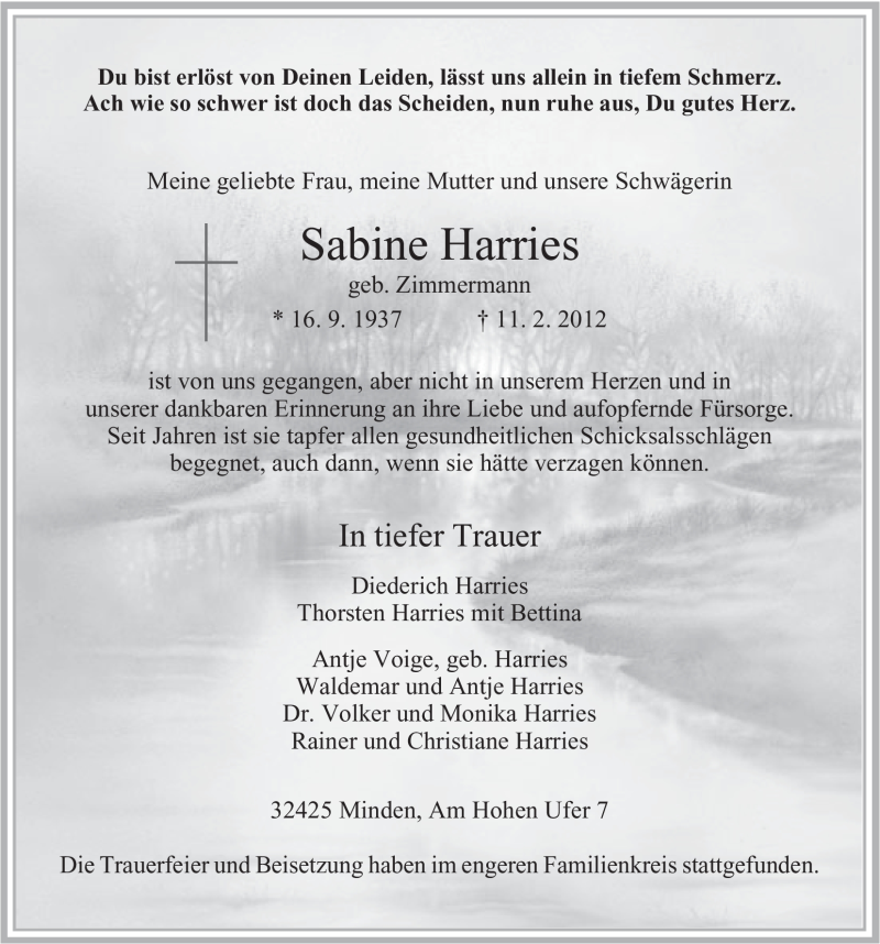 Hier finden Sie alle Traueranzeigen aus der Zeitung, die bisher für Sabine Harries erschienen sind. Weitere Traueranzeigen, die in der Zeitung erscheinen, werden hier ebenfalls aufgelistet