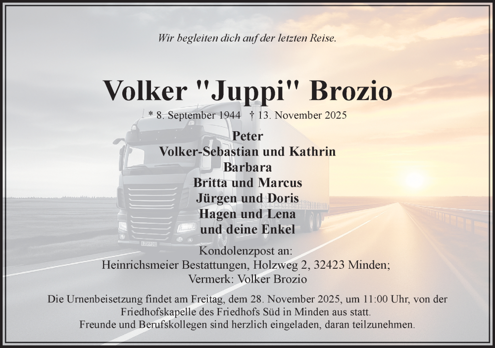 Hier finden Sie alle Traueranzeigen aus der Zeitung, die bisher für Volker Brozio erschienen sind. Weitere Traueranzeigen, die in der Zeitung erscheinen, werden hier ebenfalls aufgelistet