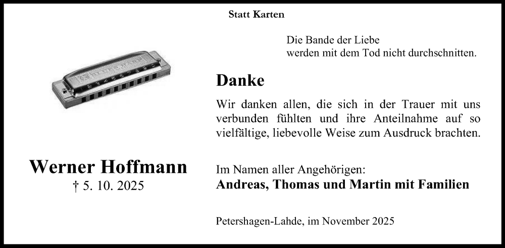 Hier finden Sie alle Traueranzeigen aus der Zeitung, die bisher für Werner Hoffmann erschienen sind. Weitere Traueranzeigen, die in der Zeitung erscheinen, werden hier ebenfalls aufgelistet