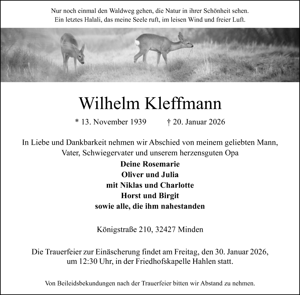 Hier finden Sie alle Traueranzeigen aus der Zeitung, die bisher für Wilhelm Kleffmann erschienen sind. Weitere Traueranzeigen, die in der Zeitung erscheinen, werden hier ebenfalls aufgelistet