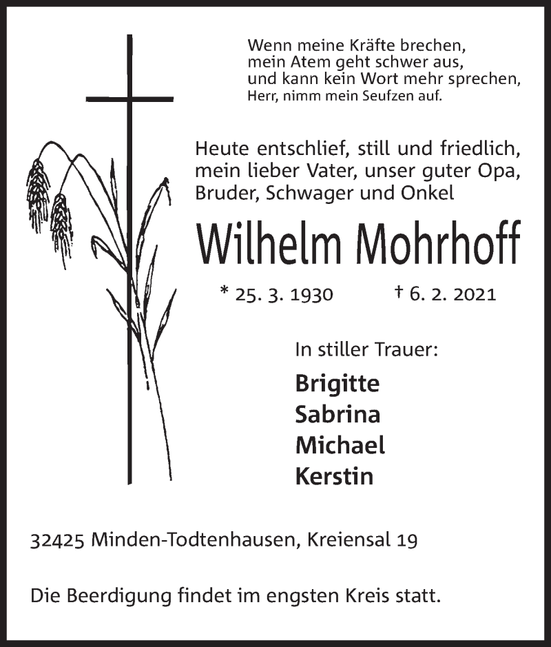 Hier finden Sie alle Traueranzeigen aus der Zeitung, die bisher für Wilhelm Mohrhoff erschienen sind. Weitere Traueranzeigen, die in der Zeitung erscheinen, werden hier ebenfalls aufgelistet