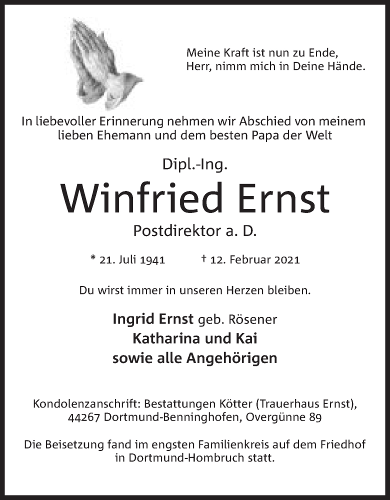 Hier finden Sie alle Traueranzeigen aus der Zeitung, die bisher für Winfried Ernst erschienen sind. Weitere Traueranzeigen, die in der Zeitung erscheinen, werden hier ebenfalls aufgelistet