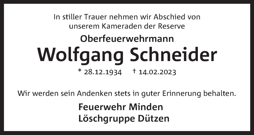 Hier finden Sie alle Traueranzeigen aus der Zeitung, die bisher für Wolfgang Schneider erschienen sind. Weitere Traueranzeigen, die in der Zeitung erscheinen, werden hier ebenfalls aufgelistet